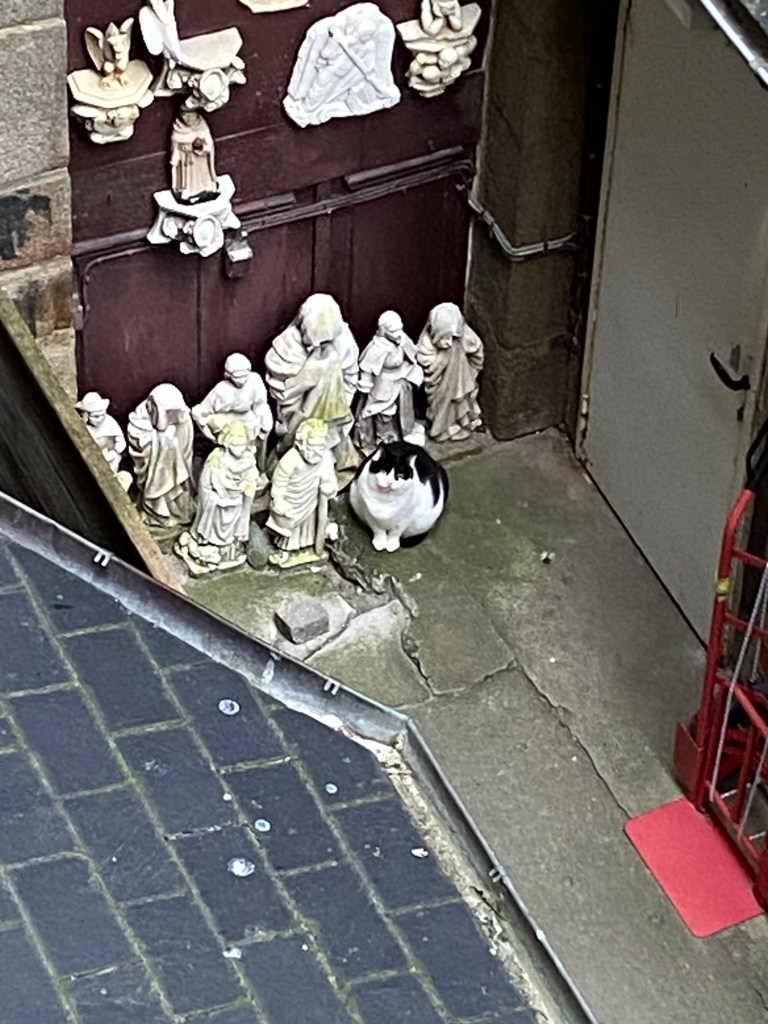 We stayed in an old stone building down from the abbey. The bit of white is a towel marking our room.