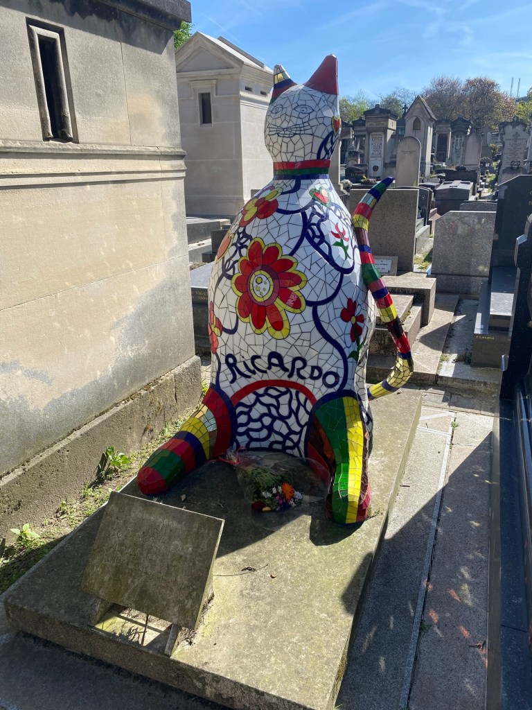 Cemeteries are a tourist draw in Paris. Not as popular, of course, as Notre Dame and the Eiffel Tower, but a chance to pay our respects to long dead people we might admire: playwrights, artists, etc. Sometimes I wander and admire the art and statues on the graves.